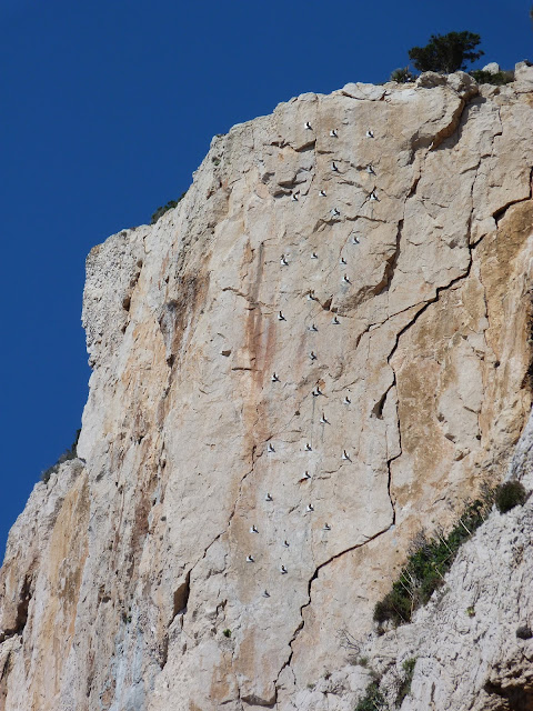 A napsütötte sziklák oldalában egy szívós hagymás növény gömbölyű virágzatai bólógattak a szélben, kismadár pihent meg egy kiálló kövön, odafenn fecskék cikáztak a levegőben.